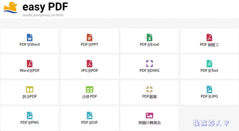 網路上提供下載的手冊、文件,用PDF格式無所不在,Adobe的Acrobat編輯版本價格不斐,所以特別介紹一套線上 EasyPDF 工具,不用安裝任何軟體即可輕鬆建立、轉換PDF,也可、合併、分割、壓縮簽名、加密與解密等,重點是免費的。