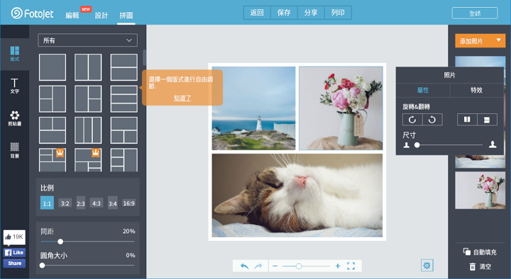 最近常需要圖片編輯工具,且也想像手機一樣的照片拼貼與創意設計,或許你會認為非Photoshop專業軟體莫屬,但門檻實在太高了。告訴你一個好消息,「FotoJet」線上圖片編輯工具,輕鬆讓你快樂的照片編輯、拼圖創作及賀卡設計,難度幾乎是0的無痛的學習與使用,重點是免費與中文介面的支援,趕快來試試吧!