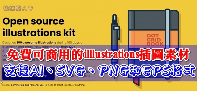 介紹一個 illlustrations 免費素材的網站,支援 AI、SVG、PNG 和 EPS 四種格式,尤其是向量圖最大的優勢就是縮放不失真,作者100天內挑戰每天畫一張插圖(現在增加了120多個插圖),每張插圖都相當有質感,重點可以免費用於個人或商業用途,希望對苦無素材的人提供一個免費的圖檔寶庫。