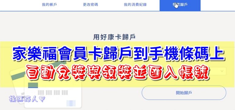 筆者常去家樂福消費,不是印出發票就是拿手機條碼給店家掃描,如果能像信用卡、一卡通或悠遊卡至接歸戶到手機條碼,不是更方便嗎?其實家樂福卡也可以進行歸戶動作,就讓挨踢路人甲來說明的數位 家樂福會員卡 歸戶 教學。