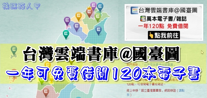 網路帶動了數位資訊的蓬勃發展,雲端的電子書也受惠,最近發現一個台灣政府機關的免費資源 台灣雲端書庫 ,它採用公共借閱權(Public Lending Right)方式,借閱費由市政府支付,讓市民在免付費即享有豐沛的圖書資源,也能保障作者及出版社的合理收入。