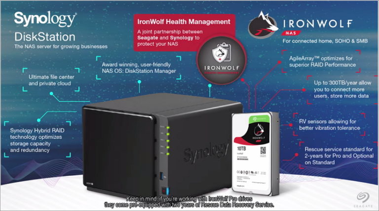 NAS網路儲存伺服器的有著集中儲存、智慧備份的特色,萬一發生同時多顆硬碟損毀,那資料可就回天乏術了。因此隨時的監控、測試硬碟狀態是降低資料損毀的不二法門,一發現有問題立即更換,NAS絕對是這方面示警高手,就讓我們來看看 IronWolf 健康管理( IHM ) 與NAS會迸出什麼火花。