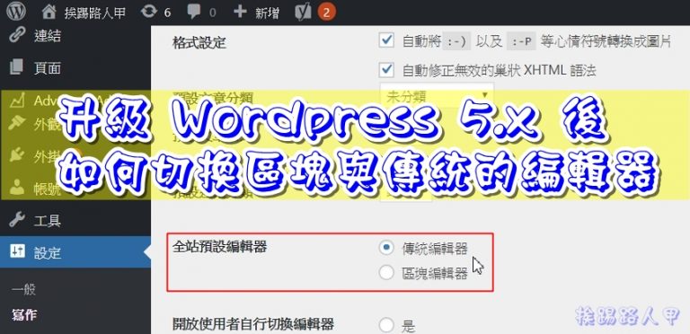 已經習慣用 了多年編輯器,如今更新到Wordpress 5.x後,推出了積木概念的新編輯器Gutenberg來取代傳統編輯器,老實說,對於老人家的我一直格格不入,幸好官方有推出了一個外掛,讓你可以在新版區塊與 傳統編輯器 之間自由的切換。