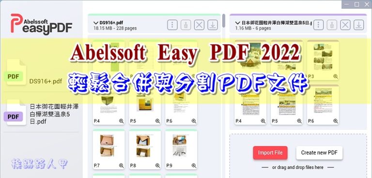 PDF 檔案具有跨平台,容易攜帶的優點、因開放性標準,能自由授權開發PDF相容軟體,網路上提供下載的手冊、文件,用PDF格式無所不在。 Abelssoft Easy PDF 2022是一款實用的PDF工具,可讓您合併 PDF 文件,也可將 PDF 文檔中刪除不需要的頁面。
